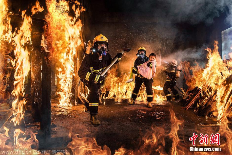 2014年11月6日,四川成都,“烈火中,他們展雄威,救人于危難,豪氣干云天”。當(dāng)晚10時(shí),11·9消防日即將到來,四川省消防總隊(duì)與成都商報(bào)聯(lián)合推出 “烈火雄心”系列海報(bào)式視覺大片,以情景再現(xiàn)的專業(yè)攝影手段,刻畫出消防官兵一個(gè)個(gè)真實(shí)的工作畫卷。整個(gè)系列海報(bào)由9幅照片組成,涵蓋了車禍救援、火場(chǎng)突圍、高樓救人等多個(gè)救援場(chǎng)景,海報(bào)中男消防員威武豪氣,女消防員英姿颯爽。“在119宣傳日,是想以一種更加直觀、形象的方式,還原消防員真實(shí)的生活工作狀態(tài)?!睋?jù)這組大片的主創(chuàng)人員介紹,這次的組圖拍攝,類型包括地震廢墟、車禍困人、高樓營救等各類場(chǎng)景,將更全面的向世人展示不同類型的消防員,以及他們?cè)诰仍F(xiàn)場(chǎng)背后的感人瞬間,從各個(gè)層面展現(xiàn)出消防官兵他們奮不顧身、舍生忘死、一心為民的英雄本色。本組圖片中的角色,都是實(shí)實(shí)在在的消防員。每張海報(bào)的背后,都有著類似的救援故事,讓這些看似熟悉的場(chǎng)景,用海報(bào)大片的形式呈現(xiàn)給大家,將事實(shí)再現(xiàn)。圖片署名:成都商報(bào)-東方IC