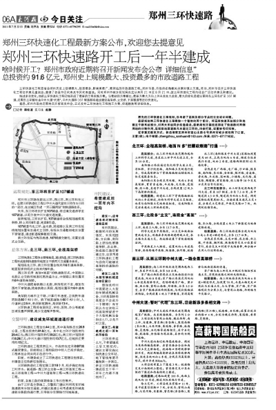 鄭州三環(huán)快速路當(dāng)年曾雄心勃勃,希望“開工后一年半建成”。(圖為2011年7月22日本報報道)