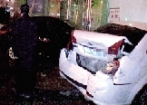 轎車半夜下橋太快連撞三車 一輛車被撞進路邊店鋪