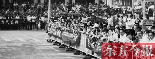此時,在溫縣殯儀館到溫縣烈士陵園的十幾公里的道路上,早已聚集起了自發(fā)前來送申亮亮最后一程的10萬余名群眾。他們有的胸佩絹花為烈士禱告,有的垂首肅立向烈士致敬,有的眼含熱淚向遠去的靈車行注目禮,盡管他們中絕大多數(shù)此前和申亮亮并不相識,但他們?nèi)杂酶髯圆煌姆绞絹肀磉_著對英雄的不舍。