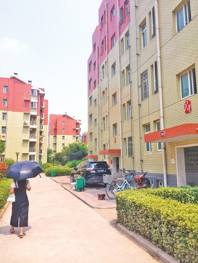 6月22日上午,大河報記者來到位于新鄭市溱水路和炎黃大道交叉口西北角的“暢馨園”小區(qū),該小區(qū)內有很多公共租賃房。同其他小區(qū)不同,在該小區(qū)的很多房子上都貼有“人才”兩個字。