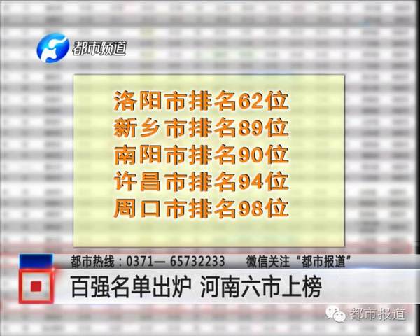 △《都市報道》:百強名單出爐 河南六市上榜↑↑↑