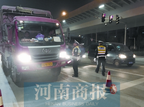 14日夜間開始,交警部門在鄭州市的三環(huán)和四環(huán)重要路口等處部署警力,展開嚴(yán)查。截至15日凌晨近2時,在鄭州市的統(tǒng)一行動中共查處貨車、渣土車等161輛,處罰駕駛?cè)?3名。