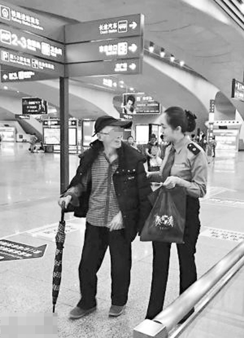 王娟拿著老人的一代身份證,通過(guò)河南省公安廳查詢到老人孫女吳女士的電話號(hào)碼。家人實(shí)在不放心老人獨(dú)自旅行,請(qǐng)求工作人員送老人回家。最終老人被說(shuō)服,坐上了返鄭的列車。