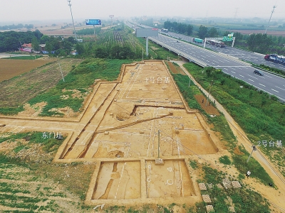 新鄭鄭韓故城北城門遺址航拍圖 河南省文物考古研究院供圖
