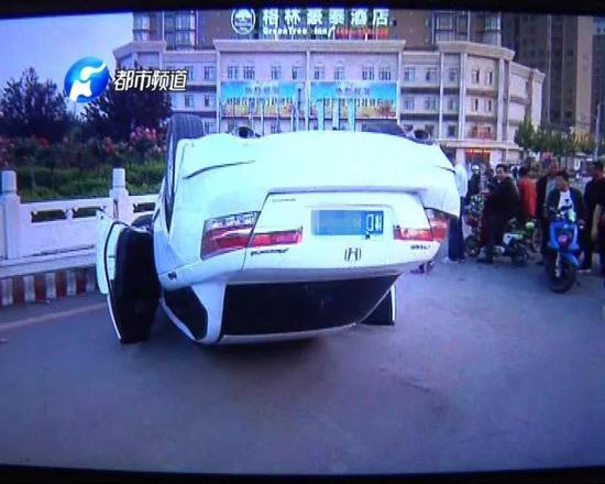 這是發(fā)生在4月26號,許昌襄城縣的一起事故。視頻中一輛白色轎車飛速撞向護欄后發(fā)生側翻。