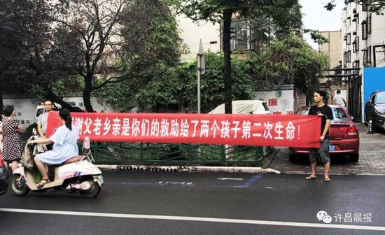 為孩子發(fā)起水滴籌捐款的愛心網(wǎng)友“只若初見”:下班時路過這里,看到獲救孩子的家人拉橫幅感謝大家:原本想和孩子的爸爸說句話,想了一下,還是默默地祝福。