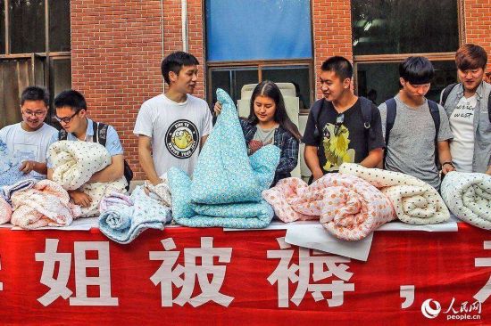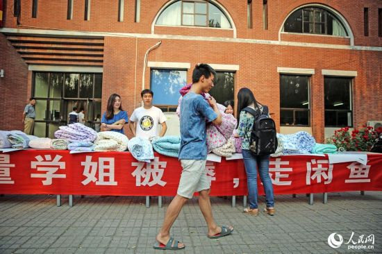 2015年05月31日,北京,清華大學(xué)生物科技學(xué)院大三學(xué)生小磊(左一)花800元買下了兩套學(xué)姐的被子。清華大學(xué)生物科技學(xué)院的大三學(xué)生小磊說,他在閑魚app上花了近800元拍下了兩床學(xué)姐的舊被子,就旁人看來這簡(jiǎn)直就是“天價(jià)”,可小磊卻稱 “不貴!學(xué)姐馬上要回韓國(guó)了,我仰慕她三年,留樣?xùn)|西給自己作個(gè)念想也好”,小磊說。