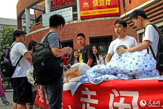 2015年05月31日,北京,清華大學(xué)大三學(xué)生小龍?jiān)谒奚針桥詳[起了攤位,一則“大量畢業(yè)學(xué)姐被褥”的廣告語,引發(fā)大量學(xué)子圍觀。