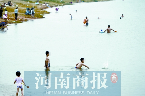 “我已經(jīng)連續(xù)來兩天了?!币荒凶诱f,他每次都會帶著孩子一塊來游泳。河南商報記者發(fā)現(xiàn),來此游泳的人群中,兒童約占一半,不少大人都帶著孩子來。