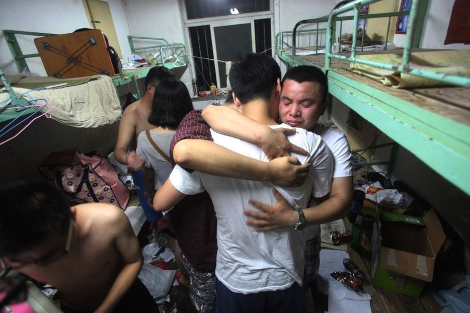2013年6月24日,山東濟南,在山東師范大學宿舍樓里,舍友們緊緊抱在一起不舍離去。因為這是他們大學生生涯的最后一夜。當晚,大學生們無法入眠,酒杯聲、哭聲交織在整個宿舍樓。第二天起床就要背著行囊啟程了,此時...