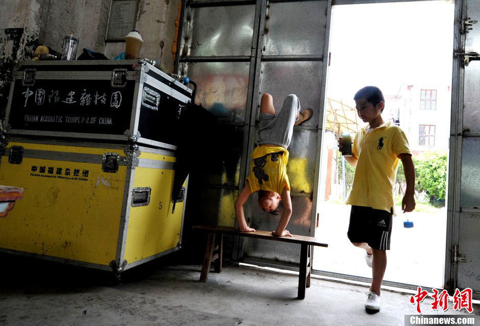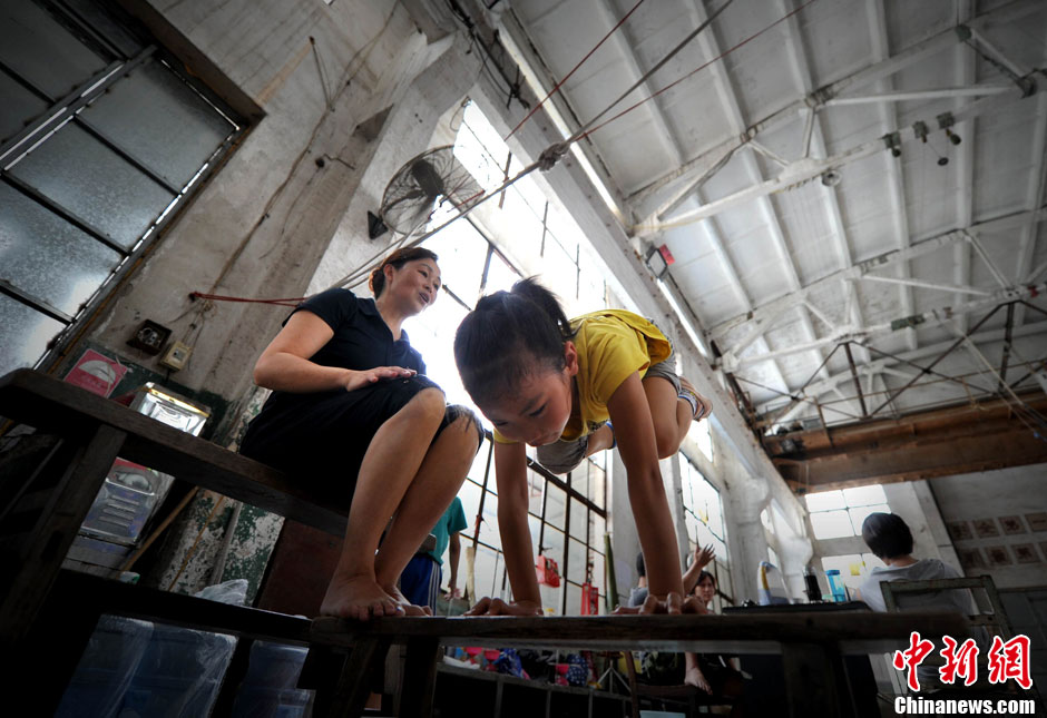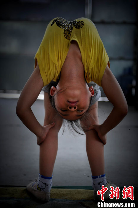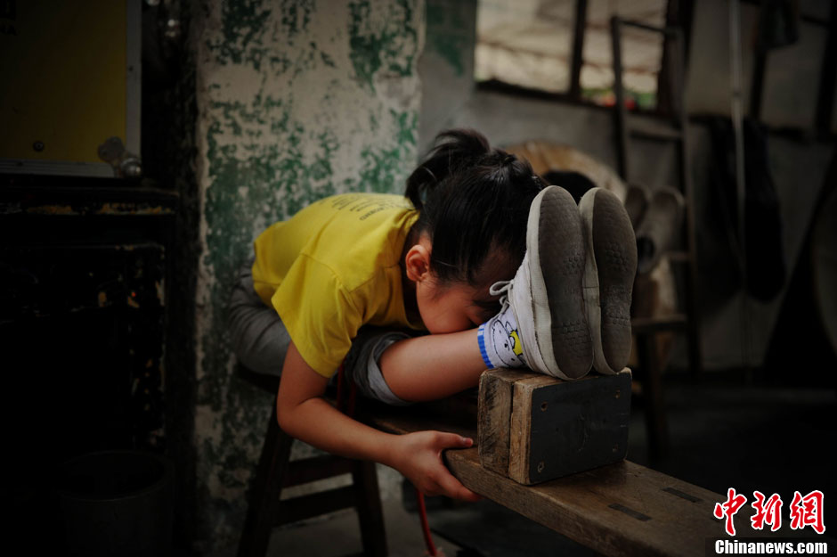 7歲,本應(yīng)是在父母懷里撒嬌的年齡,小秀華卻在福建省雜技團(tuán)訓(xùn)練場(chǎng)里度過一年的時(shí)間。壓腿、倒立、彎腰等基本功已練得扎扎實(shí)實(shí)。小秀華來自湖南,目前是團(tuán)里最小的學(xué)員,父母將她送來后已經(jīng)返回家鄉(xiāng),在這里的一切除了老師就靠她自己。但在記者看來,她已表現(xiàn)出和自己年齡不符的成熟和堅(jiān)強(qiáng)。在訓(xùn)練過程中,有的動(dòng)作不是常人所能想象的痛苦,小秀華在無法忍受的時(shí)候從不會(huì)叫出聲,只會(huì)自己默默的流出眼淚,在外人看來感覺很心酸,但她自己卻覺得這是應(yīng)該的,所謂臺(tái)上一分鐘臺(tái)下十年功,小小的秀華已經(jīng)領(lǐng)悟到了。