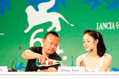 2001年,還是新人的她剃了光頭在《天地英雄》中反串慧覺和尚,并結(jié)識(shí)了姜文。因?yàn)橹茼嵲谥醒霊騽W(xué)院時(shí)的老師張仁里,同時(shí)也是姜文當(dāng)年的專業(yè)課老師,這對(duì)年齡相差15歲的師兄妹,更加有了共同語言。得到了姜文的青睞,周韻被姜文推薦給自己正在拍的另一部戲,這就是由陳逸飛執(zhí)導(dǎo)的電影《理發(fā)師》。