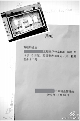 他稱將盡快對(duì)微博上的投訴進(jìn)行回復(fù),以消除通知帶來的影響和誤會(huì),同時(shí)將收集業(yè)主意見,慎重考慮停車位費(fèi)用問題。