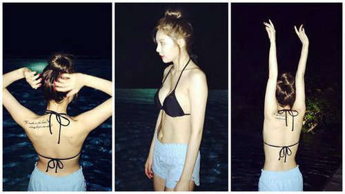 23歲的泫雅昨天看起來似乎是在戶外泳池戲水,她po出3張上半身穿著黑色比基尼、下半身套上藍色短褲的照片,還寫道:“度過一段美好的時光,好開心?!闭掌械乃裏o論是側(cè)面或背影,身材都完美得無懈可擊,難怪吸引逾11萬粉絲按贊。
