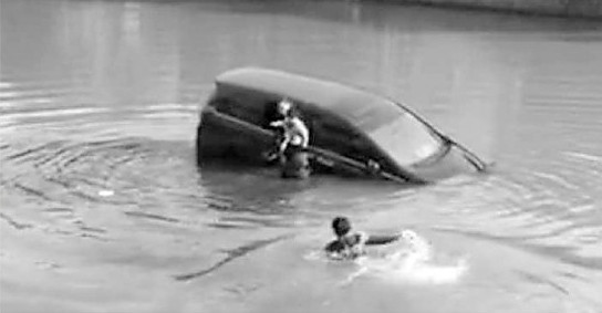 哪知,女司機(jī)大概嚇壞了,一下就沉下水去,郭剛馬上托她胳膊,助她浮起來(lái)。河水深2米多,郭剛連拖帶拽將她弄到岸邊。