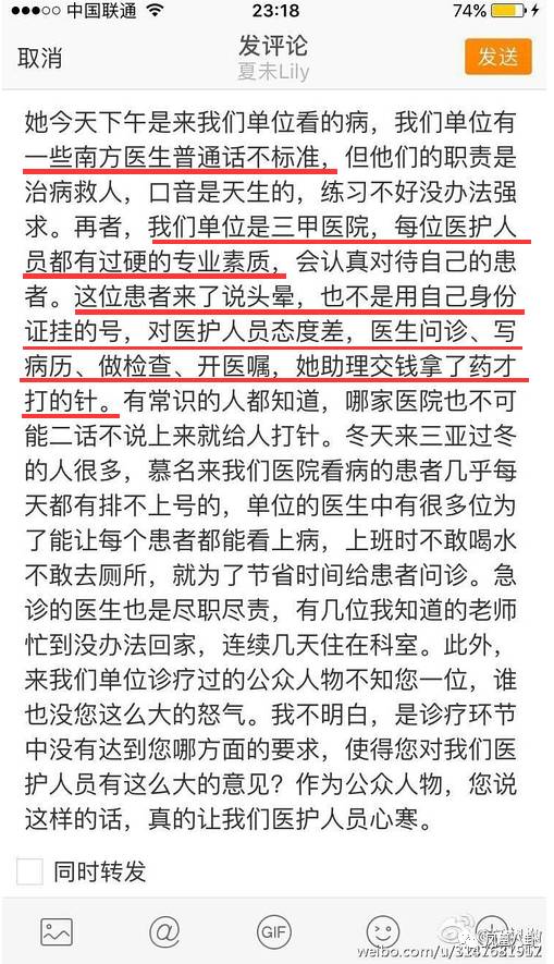 網(wǎng)友的態(tài)度一般是各站一邊,有吐槽部分醫(yī)生看病態(tài)度確實存在問題,也有網(wǎng)友質疑明明該排隊看門診,為何利用明星身份擠占急診的名額。