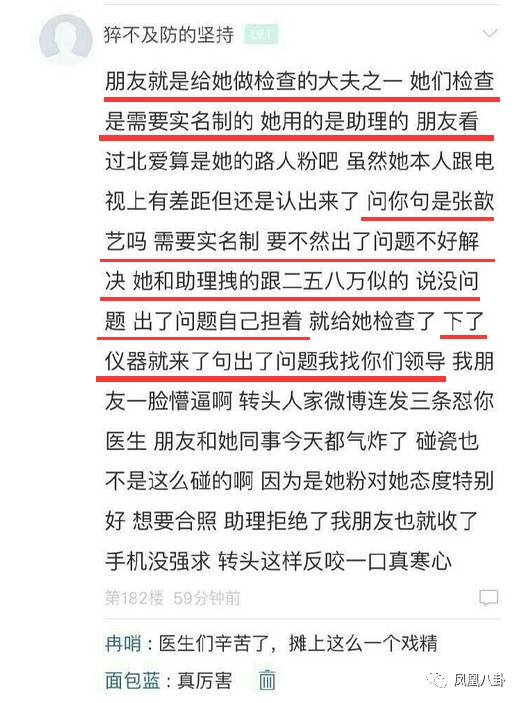 不少網(wǎng)友也補充說明了當時的情況,力證醫(yī)生當時給張歆藝做了全套檢查,張歆藝在結束檢查后還威脅醫(yī)生“出了問題找你們領導”。