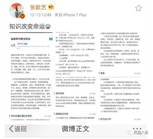 張歆藝不滿被“強迫”打針也有她的看法,她貼出了百度百科對該藥物的解釋,稱“知識改變命運”,認為醫(yī)院在不給自己做“皮試”的情況下就打針是不負責任的。