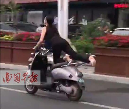 4月24日,有網(wǎng)友在微博上發(fā)布一段視頻:一女車手騎電驢的方式有些奇葩,車輛行駛過程中,女子突然往后伸出大長腿,擺出“飛行”姿勢一路前行。” 還有網(wǎng)友調(diào)侃說,“沒想到你是這樣深藏不露的大長腿”,認為該女子的駕車行為頗為奇葩。