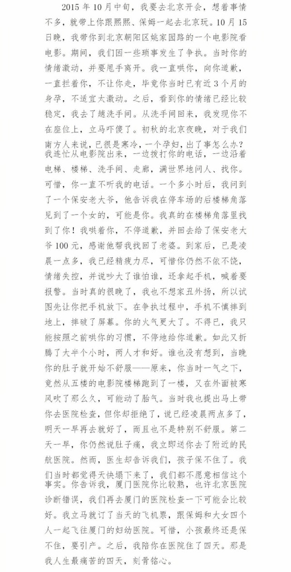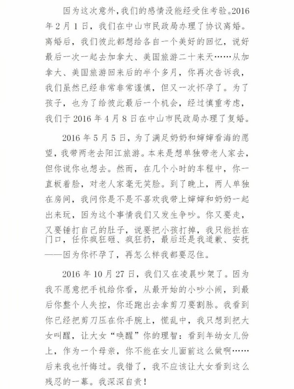 劉洲成凌晨發(fā)長文否認(rèn)家暴
