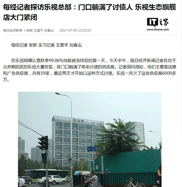 探訪樂視總部:門口躺滿了討債人