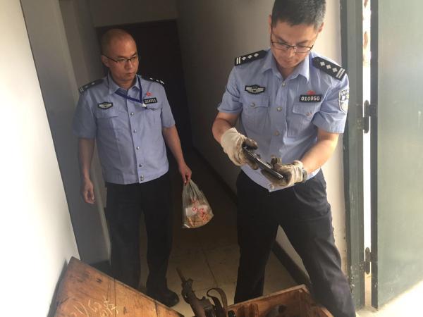 周向陽(yáng)(右)在相關(guān)單位檢查清點(diǎn)槍支。 本組圖片 南京警方提供