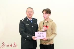 近日,白云警方為其送上表揚(yáng)信和經(jīng)白云區(qū)見義勇為評定委員會頒發(fā)的見義勇為獎勵金。