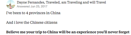 在美國問答網(wǎng)站Quora上隨便一搜“Chinatravel”,海量結(jié)果秒秒鐘刷屏。外國網(wǎng)友不是在中國玩得不亦樂乎,就是在準(zhǔn)備來中國的路上。還有一些外國小伙伴們表示,來中國旅游,回國后各種崩潰+“水土不服”!