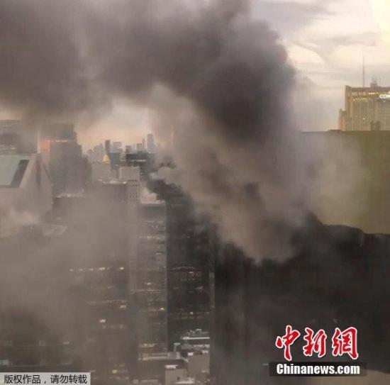 資料圖片:當(dāng)?shù)貢r(shí)間2018年1月8日,美國紐約,據(jù)美國CBS網(wǎng)站報(bào)道,位于紐約市曼哈頓第五大道與56街交叉處的特朗普大廈起火,現(xiàn)場(chǎng)濃煙滾滾。
