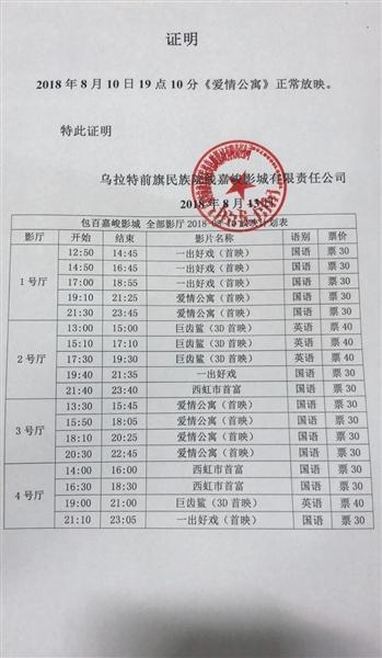 包百嘉峻影城給出影院排片來(lái)回應(yīng)證明。