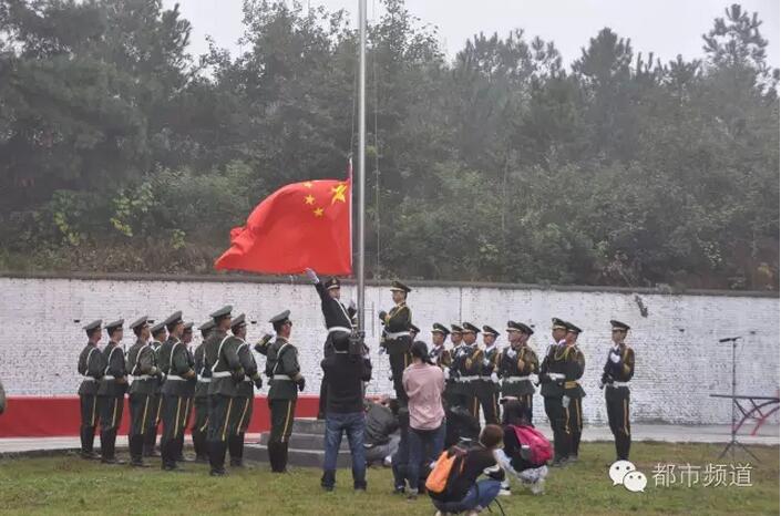 河南都市頻道韓佳、曉紅、嘉寧、劉雯和魅力881主持人陽(yáng)陽(yáng)和各自的戰(zhàn)隊(duì)隊(duì)員一起,在紅25軍出發(fā)地——羅山縣何家沖進(jìn)行一場(chǎng)特別的國(guó)旗傳遞。