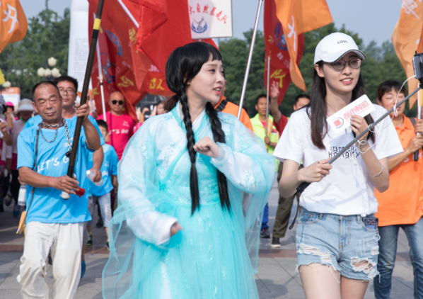 歷史悠久的河上街,都市頻道第一網(wǎng)紅小橙子化身漯河“水神”,來搞事情啦!不靠譜“水神”還登上了舞臺,參與主持,還和R&B小子金龍一起嗨唱健步走主題曲。就是要搶風(fēng)頭。