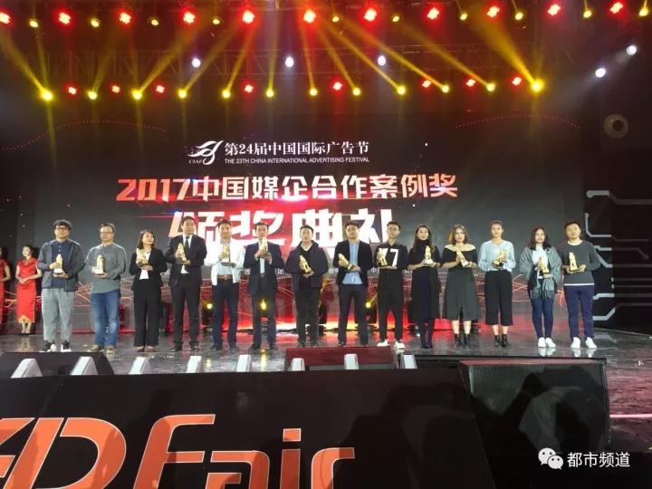 在2017中國(guó)廣告長(zhǎng)城獎(jiǎng)·廣告主獎(jiǎng)之媒企合作案例獎(jiǎng)?lì)C獎(jiǎng)現(xiàn)場(chǎng),河南都市頻道榮獲6項(xiàng)營(yíng)銷大獎(jiǎng)。都市頻道團(tuán)隊(duì)?wèi){借廣告與節(jié)目的融合、專業(yè)的服務(wù)水準(zhǔn)、勇于創(chuàng)新營(yíng)銷策劃能力,獲得“中國(guó)長(zhǎng)城獎(jiǎng)2017年度金伙伴獎(jiǎng)”。