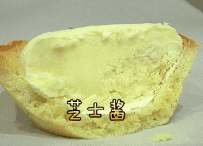 乍一看除了頂部有點酥其它并無特別,掰開的一瞬間流淌出的芝士,連香香也是第一次見到。這奧秘究竟在哪里?
