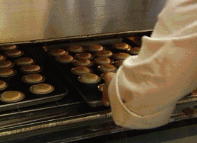 原來這款芝士蛋撻里面是芝士醬,外面卻是曲奇,所以吃起來口感會不一樣,外脆內糯的感覺,上面刷一層蛋黃液增加口感,推進烤箱靜靜等待。