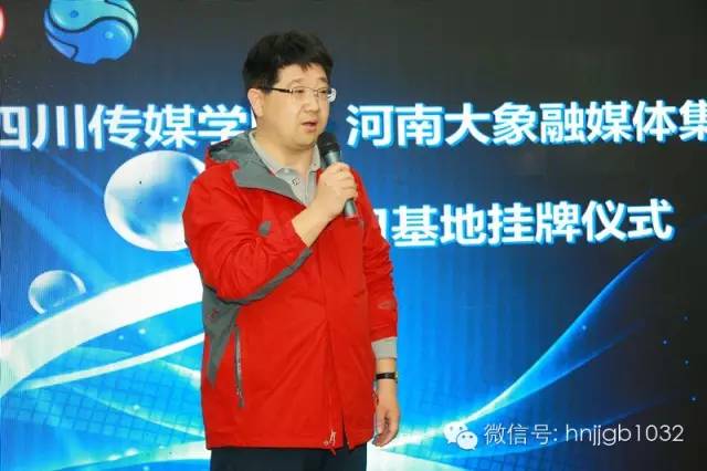四川傳媒學(xué)院副院長王雷、河南大象融媒體集團(tuán)副總裁李強(qiáng)為“四川傳媒學(xué)院·大象融媒就業(yè)實習(xí)基地”掛牌。