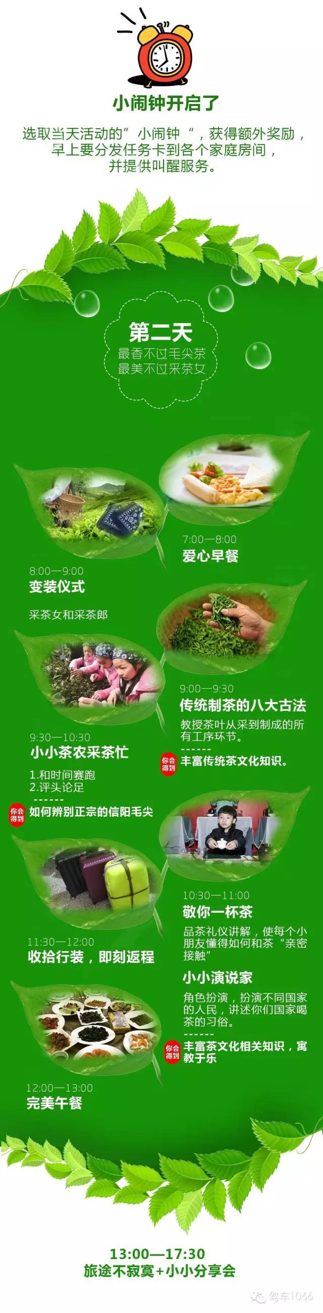 我們不只是單純的采茶,會(huì)有品茶禮儀講解,讓孩子對(duì)茶文化有一定的了解,你可以采茶,炒茶,品嘗茶,學(xué)習(xí)茶文化。還會(huì)提供采茶頭巾以及小竹筐,增強(qiáng)活動(dòng)儀式感,讓孩子和家長(zhǎng)更好的融入環(huán)境之中。同時(shí)現(xiàn)場(chǎng)有角色扮演互動(dòng)環(huán)節(jié),讓孩子寓教于樂,不僅僅走馬觀花走個(gè)采茶的流程而已。