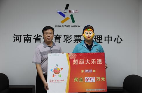 9月19日,大樂透第16110期開獎,本期共中出一等獎8注,我省鄭州彩民李先生(化名)憑借36元的小復式斬獲1注697萬元的頭獎。21日下午,李先生戴著墨鏡身著黑衣滿面春風地來到省體彩中心領獎。
