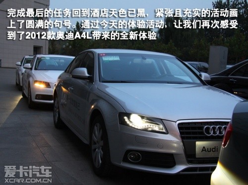 新奧迪A4L“都市精英之旅”作為奧迪A4L2012年型上市后的一次更深入的體驗活動,計劃于2011年9-10月期間,分別在鄭州、西安、天津、濟南持續(xù)舉行四個分站的系列投放活動(鄭州及西安站已經(jīng)圓滿落幕),一汽-大眾奧迪將通過這一系列的活動,向用戶全面展現(xiàn)2012款奧迪A4L。而此次天津站的活動,主辦方安排了別具經(jīng)特色的體驗活動,讓我們通過完成任務(wù)來全方面體驗奧迪A4L的再次改變。