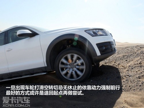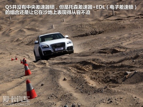 面對(duì)眼前更加陡峭的沙坡,quattro四驅(qū)系統(tǒng)可以說(shuō)是毫無(wú)顧忌的展現(xiàn)了其自身的機(jī)械性?xún)?yōu)勢(shì)。所謂“機(jī)械性”,特指其干脆利索的工作效率。也就是說(shuō),quattro四驅(qū)系統(tǒng)的核心——Torsen中央差速器在工作時(shí)可以百分百執(zhí)行當(dāng)前的扭矩分配,并不會(huì)因其某一個(gè)環(huán)節(jié)出現(xiàn)狀況而受到干擾。