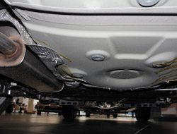 后懸掛:扭力梁式半獨立懸架:扭力梁式懸掛的扭梁中間橫梁和兩側(cè)的懸掛是焊死在一起的。扭力梁式半獨立懸架是通過一個平衡桿來使車輪產(chǎn)生傾斜,保持車輛的平穩(wěn)。其工作原理是將非獨立懸掛的車輪裝在一根整體車軸的兩端,這樣當一邊車輪運轉(zhuǎn)跳動時,就會影響另一側(cè)車輪也作出相應(yīng)的跳動,使整個車身振動或傾斜。優(yōu)點:構(gòu)造簡單、承載力大、缺點:平穩(wěn)性與舒適性欠缺。