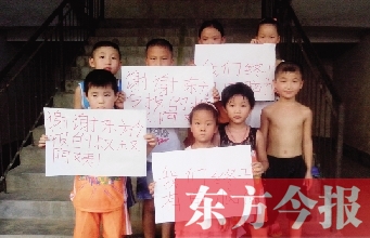 昨晚,已經(jīng)返回當(dāng)?shù)氐内w會勇傳來圖片,畫面上,幾個(gè)孩子舉起寫著“感謝東方今報(bào)的叔叔阿姨”的紙片。字寫得歪歪扭扭,但,看到的人都覺得很溫暖。DF