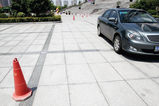 記者坐在駕駛位置,車輛左前保險杠與左前車輪夾角處,是視覺盲區(qū);即使將車座調(diào)至最高位置,如果物體低于車前引擎蓋高度,仍然無法發(fā)現(xiàn)障礙物。