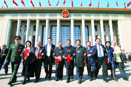 3月14日上午,參加十一屆全國人大五次會議閉幕會的河南代表團(tuán)代表手挽著手走出人民大會堂。在10多天里,河南代表團(tuán)的160余位代表認(rèn)真履職,充分展示了駐豫全國人大代表的精神風(fēng)貌。記者 李建峰 郭 宇 攝