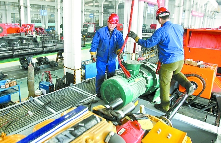 3月17日,南陽二機集團出口烏茲別克斯坦的2000米拖掛鉆機正在加緊組裝中。目前,這家企業(yè)已和烏茲別克斯坦確立了在當?shù)睾献鹘◤S的意向,今年將有20臺套鉆機在該國本地生產(chǎn)。 王天定 攝