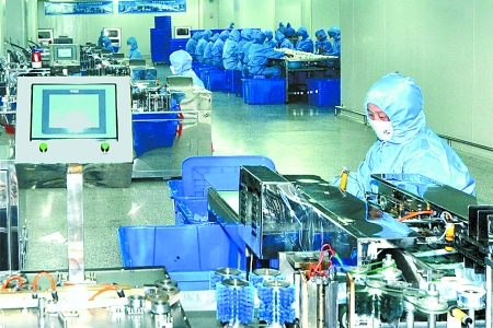 3月17日,工人們在郟縣醫(yī)療器械孵化園內(nèi)工作。該孵化園區(qū)以圣光集團為依托,吸引了20家注射器、手術(shù)包等醫(yī)療器械生產(chǎn)研發(fā)企業(yè)入駐,年創(chuàng)利稅9000萬元,并為當?shù)靥峁┝?000多個就業(yè)崗位。 王堯 攝