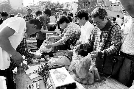 在現(xiàn)場,管城區(qū)商務(wù)局的工作人員忙個(gè)不停。該局工會(huì)主席李國占說,不到6點(diǎn)半,就有很多市民提著籃子來買菜,7點(diǎn)鐘開始賣菜時(shí),已經(jīng)有200多人在排隊(duì)。