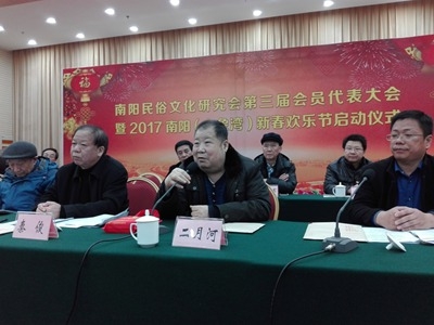 12月28日,2017南陽(yáng)(白象灣)新春歡樂節(jié)啟動(dòng)暨南陽(yáng)民俗文化研究會(huì)換屆大會(huì)在南陽(yáng)賓館成功舉行,該研究會(huì)聘請(qǐng)二月河、周同賓、聶振弢等人為顧問。當(dāng)天,民俗協(xié)會(huì)會(huì)員代表及多家省內(nèi)外新聞媒體和自媒體代表一百多人參加,見證了南陽(yáng)(白象灣)新春歡樂節(jié)啟動(dòng)。