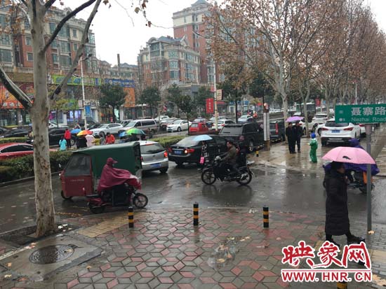 記者在現(xiàn)場看到,即使沒打通聶寨路,由于下雨開車接孩子的家長較多,有的直接把車停在了快車道兩側(cè),交通一直擁堵到孩子接完畢交通才有所緩解。